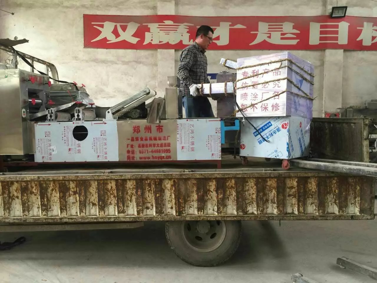 南陽客戶訂購燴面機,一周前和王總進行多次溝通。今天來廠考察,馬上購機,調試設備發貨。預計后天就可以到達客戶目的地。恭祝生意興隆,財源滾滾。