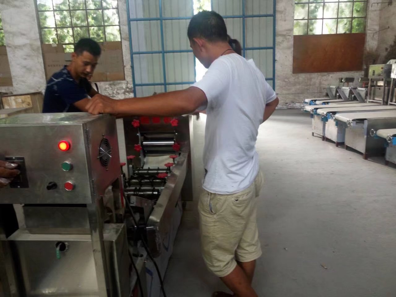 許昌鄢陵呂先生經營一家小型面食食品加工廠,經營有燴面批發生意。每天做30袋左右,由于使用的是老款的單輥單刀的設備,效率已經跟不上,每天花費的時間太長。呂先生準備更換新型設備,在網上聯系到一品鮮后,經過多次的溝通,在7月25日定購全套HMj-5型燴面機(雙輥三刀,自動刷油,自動處理廢料,帶電腦控速。每小時產量12-14袋左右,用此設備每天用兩三個小時就可以完成呂先生的生產目標。)當天定購設備,下午就在廠區現場調試設備。車間師傅也詳細的給呂先生講解了使用保養注意事項。當天下午就通過物流發往呂先生所在地。 在此希望一品鮮設備能幫助呂先生更快更好的完成生產任務,節省時間,節省人工,盈利更多!
