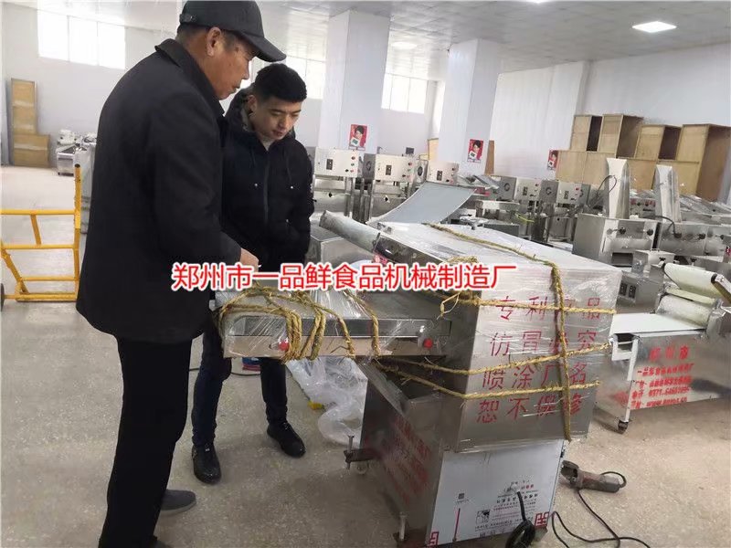 安徽阜陽客戶第二次來到一品鮮總部,定購全套8代多功能成型機設備??蛻粼澢绊樎房疾爝^一次,回家安置好店面后,再次前來購買設備,并且進行技術培訓。目前設備已經當面調試完畢,下午立刻發貨。