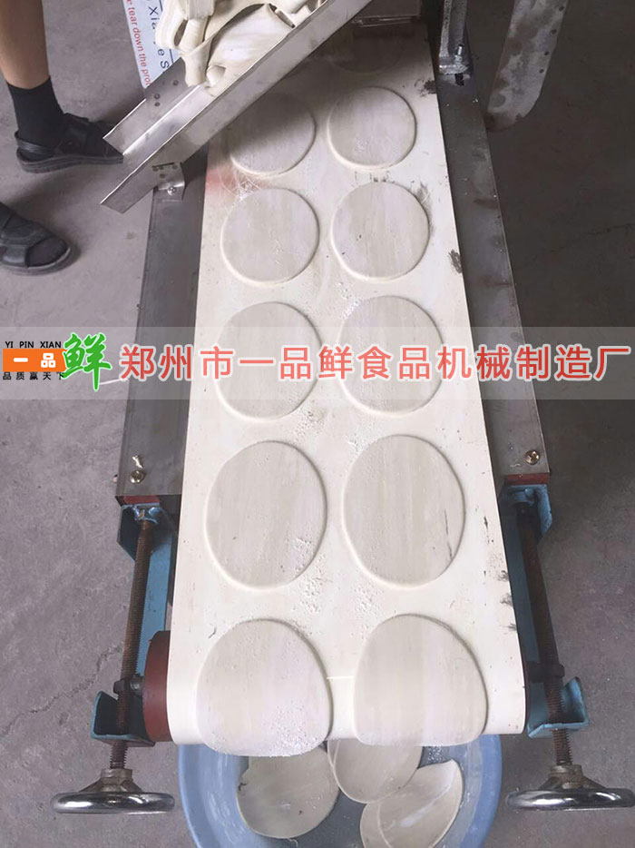 設備功能:本機可生產荷葉餅機(月亮饃機),刀具形狀可根據您的要求定做,配套有380伏或220伏電機,輸送帶周長4米,擁有刷油裝置,廢料自動回收等功能,避免以往老機型廢料不回收,影響面坯質量等弊端。